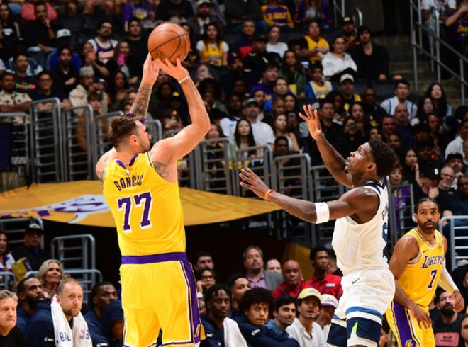 最終,湖人隊以128比110擊敗了森林狼隊,拿到了新賽季的首場勝利,東契奇的努力沒有被白費。